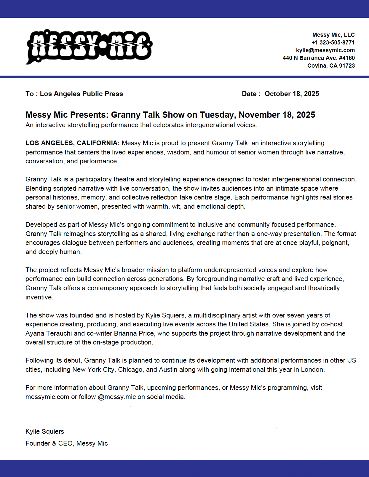 Messy Mic is a live, interactive storytelling brand that’s part show, part social hang, and fully human.